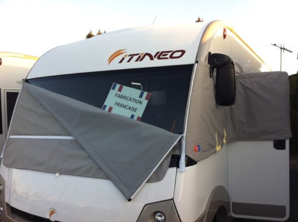 Si vous possédez un intégral Itinéo, ces protections Confort'therme, garantie 3 ans, sont faites pour votre véhicule. Imperméables et imputrescibles, ces écrans souples(noirs ou gris) constitués de sept couches d'isolant sont dotés de fermetures à glissière en plastique. Il est aussi possible de disposer d'une bavette de bas de pare-brise, bien pratique, moyennant un supplément de 75 €.
