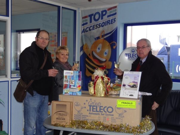 Suite à la tombola organisée durant le dernier salon des véhicules de loisirs au Bourget par le réseau TOP ACCESSOIRES, l’heureuse gagnante, Mme Boutinot Michèle (77) a reçu son gain récemment : une antenne satellite automatique TELECO remise par Gilbert Gobé, dirigeant de la concession EXPO CAMPING SPORT (95 et 78) et membre du réseau TOP ACCESSOIRES.