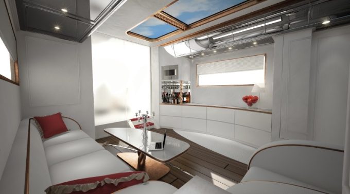 Au-delà de son tarif de base de 2,1 millions d'euros, ce projet de Liner de luxe, signé Marchi Mobile, détonne par son design avant-gardiste.