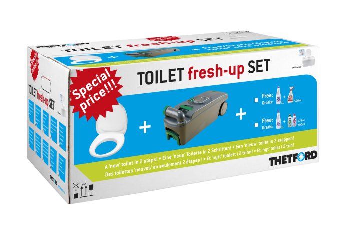 Thetford propose un kit identique, mais destiné cette fois à sa série C400. Avec le kit Fresh-Up Set C400, les toilettes C400, installées dans un camping-car d’occasion, retrouveront une seconde jeunesse pour une hygiène parfaite.