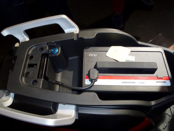 Batterie de plancher du scooter NIU N-GT © Camping-Car Magazine