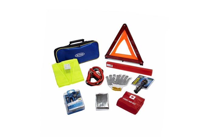La trousse de dépannage Ring RCT2 vous permettra de parer à toutes urgences survenant sur la route avec votre véhicule (crevaison, avarie moteur...). Elle comprend pour cela un triangle de signalisation pliant, un gilet grande visibilité, une boîte d’ampoules universelles, une torche en caoutchouc, une paire de gants en coton, ainsi qu’un jeu de câbles de démarrage et une mini trousse à pharmacie. Elle s'affiche à 56 €.