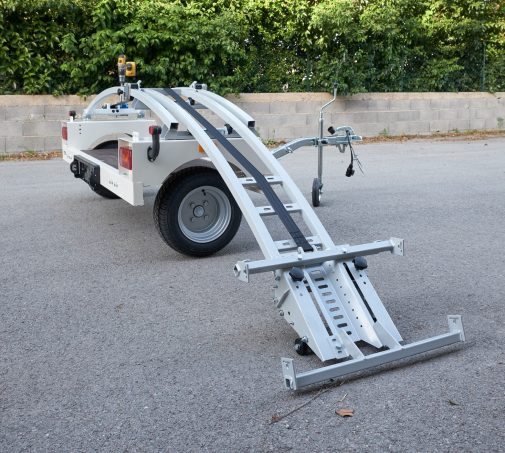 Sa forme en arc permet de monter ou descendre facilement un scooter, ou une moto, grâce à un treuil avec réducteur. Celui-ci s'actionne par une simple visseuse portative. Son châssis fait appel à des éléments en acier découpés au laser, zingués et thermolaqués. Il repose sur un essieu Knott doté de roues de 10 pouces.