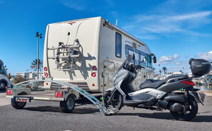 Compact (1,57 m de large pour 2,02 m de long) et d’un PTAC compris entre 500 et 750 kg, la remorque transversale Big Jumbo de Porteos se démarque par sa rampe d'accès spéciale ''auto-chargeuse'' plutôt ingénieuse.