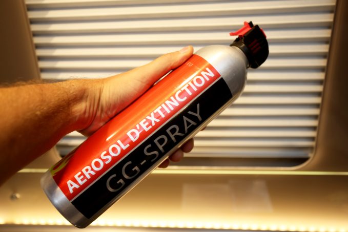 Si le GG-Sprayne peut remplacer un extincteur traditionnel, lorsque la réglementation l'impose, il peut cependant se montrer utile près d’une cuisinière. Un support est d'ailleurs disponible, en accessoire, pour le garder à portée de main. Cet aérosol, fabriqué en France, possède une date d'utilisation maximale de 3 ans.