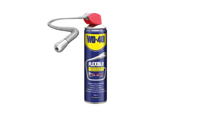 Un gain en efficacité et en praticité, et qui permet de libérer la main pour tenir éventuellement un outil, une lampe ou maintenir la position d’un système d’ouverture. Ce tube à mémoire de forme a été conçu pour résister à la chaleur. Après usage, il se repositionne simplement le long de l’aérosol. Pour une application large, le WD-40 Flexible conserve son système de pulvérisation classique, une fois le flexible abaissé.