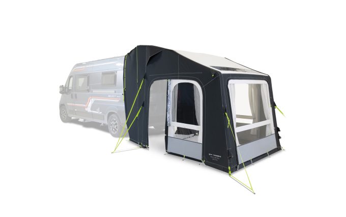 Kampa Dometic s'apprête à enrichir son catalogue avec le Rally Air Pro 240 T/G, un nouvel auvent destiné aux grands fourgons aménagés. Il a été conçu pour s’adapter aux modèles dotés de portes battantes. Une fois celles-ci ouvertes, l’espace de vie à l'arrière du véhicule s'agrandit de plus de 6 m2.