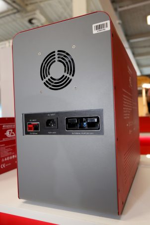 Affichant 28 kg sur la balance, ce combiné peut assurer de nombreuses fonctions en mettant en relation différents appareils. Sous son faux air de console centrale d’ordinateur, il intègre une batterie Lithium-fer-phosphate de 100 Ah, un convertisseur de tension de 1 500 W, un chargeur 12/220 V de 20 A ainsi qu’un régulateur de charge MPPT. Il est également envisageable de brancher une autre pile EZA au combiné, d’y connecter un panneau solaire (fixe ou portatif) voire une éolienne.