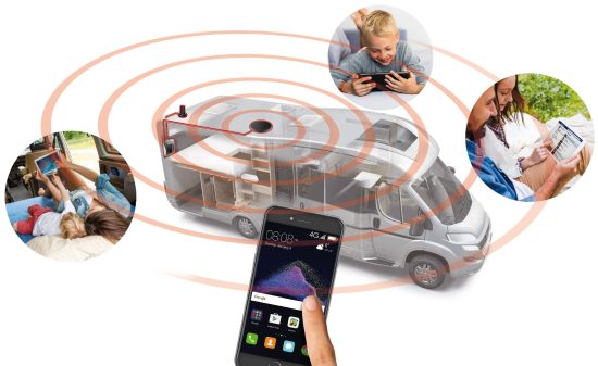 - En option, le routeur WiFi Van T400 permet, avec une carte SIM de transformer le signal 4G et 3G en wifi pour connecter une tablette ou tout autre appareil relié au WiFi (système de vidéo surveillance par exemple).