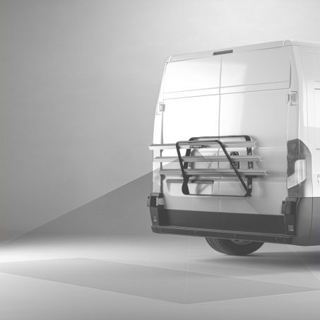 Il permet d'assurer une vision parfaite vers l'arrière du véhicule sans rencontrer d'obstacles dans le champ de vision de l'écran de contrôle situé en cabine. Cet équipement s'installe directement sur le porte-vélos sans aucun perçage. Il faut simplement le glisser sur le rail extérieur du porte-vélos puis serrer les vis prévues à cet effet.