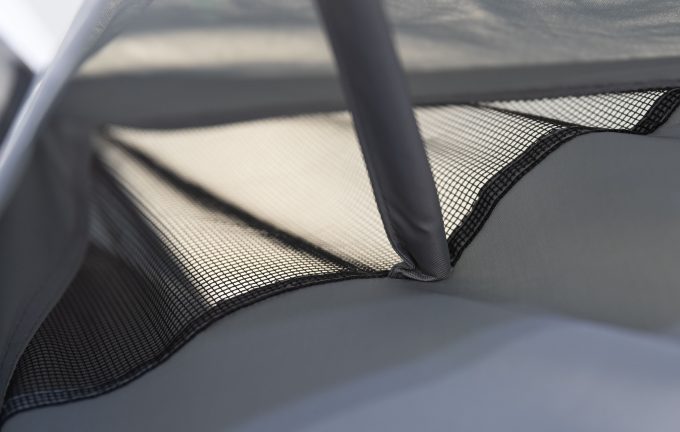 Baptisé PVC Weathershield, son tissu à la fois étanche, ultra-résistant (PVC 400 g/m2) et facile à nettoyer, se montre suffisamment robuste pour affronter des conditions hivernales sévères.