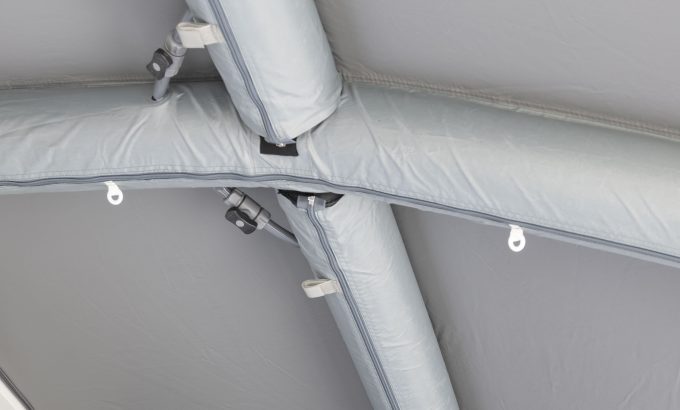 Pour garantir le meilleur confort possible à ses utilisateurs, ce sas-auvent bénéficie également d'autres avantages. Son armature fait appel à une structure gonflable (technologie AirFrame) pour une mise en place simple et rapide. Des aérations, protégées des intempéries, assurent une circulation optimale de l'air intérieur. Le Winter Air PVC peut être en plus solidarisé avec la cellule du camping-car (ou du fourgon aménagé) à l'aide d'un jonc de 4, 6 ou 7 mm. Celui-ci permet de le fixer directement sur le rail d'un store extérieur de la marque. Selon la version, ce raccordement peut s'effectuer à différentes hauteurs comprises entre 2,35 et 2,65 m.