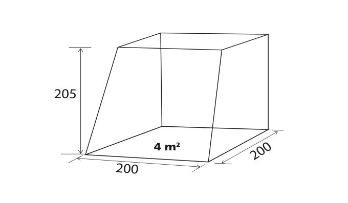 L'auvent Brunner Comet se présente comme une extension de 4 m2 située à l’arrière du véhicule (dimensions : L 200 x l 200 x h 205 cm). Cette “pièce en plus” peut servir aussi bien à la toilette, la cuisine, que pour mettre à l’abri du matériel (vélos, chaises). Sa mise en place s'effectue aisément grâce à l’absence d’armature: il suffit de poser la toile sur le hayon ouvert, de la tendre vers le bas (sur chacun des trois côtés), puis de l’arrimer au sol à l’aide de sardines (fournies).