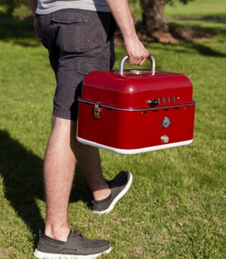 Sous la forme d’une petite valisette avec anse pour faciliter le transport, ce mini-barbecue est composé d’un corps en acier inoxydable verrouillé par des loquets latéraux. A l’intérieur, un petit ventilateur alimenté par piles, permet de varier les types de cuisson (grill, fumoir), en plus de faciliter à obtenir des braises.