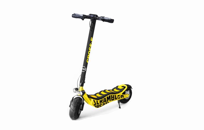 Pour une utilisation plus tout-terrain, la Ducati Scrambler Cross-E adopte un moteur de 500 W dans sa roue arrière. Cette trottinette reçoit par ailleurs des pneus tubuless anti-crevaison de 6,5 pouces et profite d'un châssis renforcé (monocoque) pouvant supporter jusqu'à 120 kg. Le tout est élaboré pour circuler sur tous les types de chaussées, même accidentées. Le freinage est assuré par des disques percés. Cette patinette Ducati peut être utilisée selon trois modes (6, 20 ou 25 km/h). L'éclairage (double à l'avant) fait appel à des leds. L'engin embarque une batterie 36 V au lithium-ion de 10,4 Ah procurant de 25 et 35 km d'autonomie selon le parcours emprunté. Son temps de charge varie de 4 à 6 h. Son poids n'excède pas 28 kg. Dimensions : L 117 x l 47,3 x h 51/120 cm.