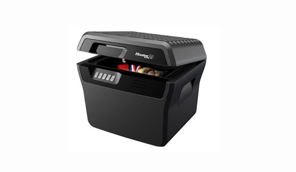 - Le caisson de sécurité Master Lock FHW40300, plus imposant mais pas trop lourd, dispose d’une chambre aux parois renforcées. Il a été imaginé pour préserver des papiers importants, mais aussi des bijoux, de l'argent liquide, un ordinateur portable ou une tablette, et tout autre objet de valeur que l'on ne souhaite pas prendre avec soi pour aller à la plage ou en excursion. Il peut contenir jusqu'à 18,5 litres d'effets personnels. Son ouverture s'effectue à l'aide d'une serrure électronique codée à 4 ou 6 chiffres (ou avec un code maître fixe) alimentée par une pile 9 V. Avec sa coque en polymère renforcé et sa porte d'accès jointée, ce coffre se montre à la fois résistant au feu (30 minutes à 843 °C) et étanche à l'eau. De quoi offrir une tranquillité d'esprit ultime en le fixant dans la soute, sous le lit ou dans le placard de son camping-car. Dimensions externes (L x l x h) : 42,1 x 35,1 x 35,9 cm. Poids : 19,5 kg.