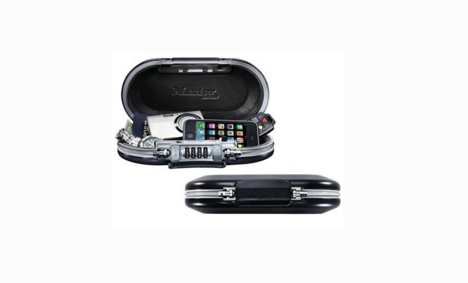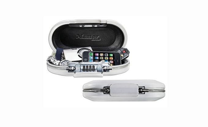 - Le mini-coffre nomade Master Lock 5900EURD peut recevoir des objets ou documents de petite taille (pièces d'identité, chéquier, montre, smartphone ou autres appareils électroniques). Son boîtier, constitué de deux solides coques en ABS, se ferme à l'aide d'une serrure codée mécanique à 4 chiffres (programmes selon votre choix). Fini le souci de la clef égarée. D'une contenance de 0,7 litre, son intérieur se pare d'une jolie mousse de protection. Des encoches sont prévues pour laisser sortir un fil d'écouteurs ou de chargeur, tout en conservant le mini-coffre fermé et sécurisé. Un câble de fixation renforcé (d'une longueur de 50 cm pour 5 mm d'épaisseur) est intégré à son pourtour. Si nécessaire, celui-ci permet de l'attacher à un point fixe. Il peut également servir de poignée pour son transport. Ce modèle est proposé en deux coloris (gris foncé ou gris métal). Dimensions externes (L x l x h) : 24 x 12,9 x 6 cm. Poids : 617 g.