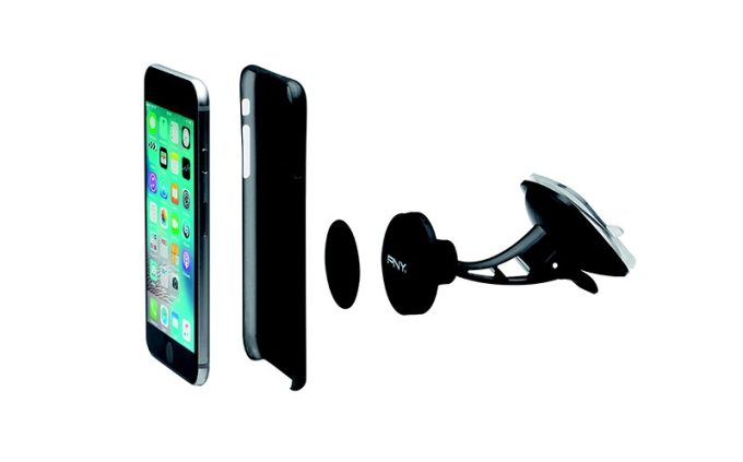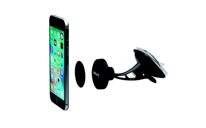 - Avec 46% des conducteurs français utilisant leur téléphone portable en conduisant, dont 32% avec des applications GPS, un support s'impose. PNY Technologies a développé le Magnet Windshield Mount, un support universel magnétique qui se fixe sur le pare-brise grâce à une solide ventouse. Il suffit de coller une pastille adhésive directement au dos de l’appareil ou sur la coque de protection de son smartphone pour que celui-ci se place ou se défasse facilement. La rotation à 360° de son embase permet de passer facilement l'écran du mode portrait au mode paysage lorsqu'on passe en utilisation navigation.