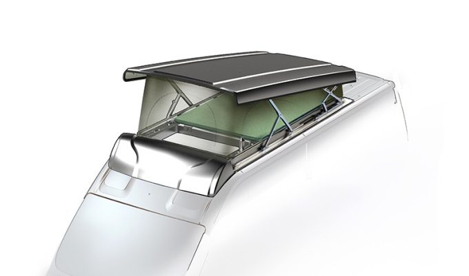 Grâce à ce procédé de fabrication, le poids total de ce toit se montre de 20 à 30 % inférieur à d'autres produits semblables. Son montage sur un van, un fourgon ou un profilé compact permet alors de jouir d'un espace nuit supplémentaire au niveau du pavillon. L'ensemble intègre un grand couchage de 200 x 130 cm.