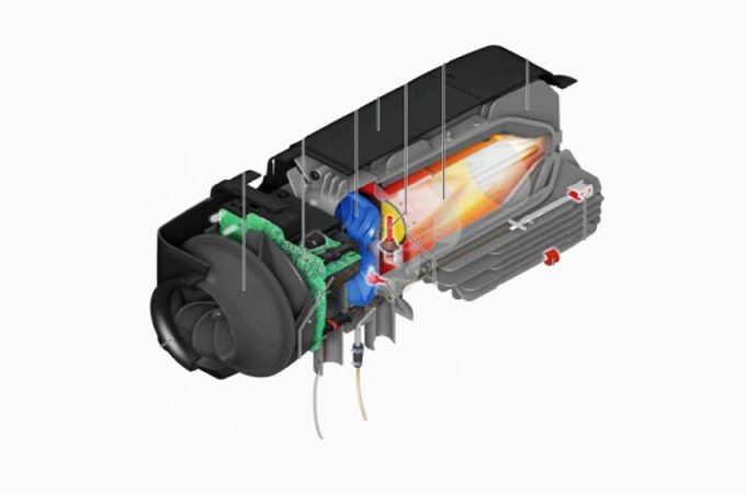Intérieur du chauffage à carburant Webasto Air Top Evo à air pulsé © DR