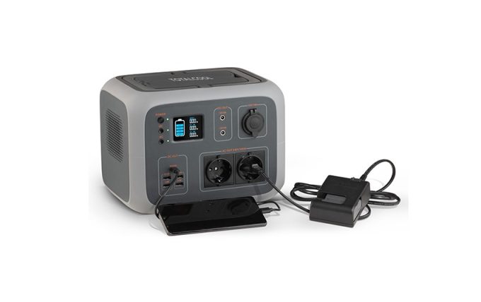 Petite et facile à transporter, grâce à ses deux poignées escamotables, cette centrale d’énergie dispose de 2 prises secteur (220V), 4 prises USB (5V 3A), 1 prise allume-cigare (DC 12V), 1 prise USB C (45W) et 1 prise MC4 (pour panneau solaire), sans oublier un plateau pour les téléphones mobiles qui se rechargent par induction (DC 10W).