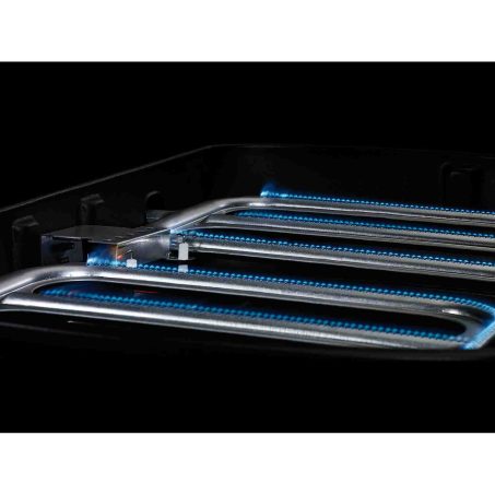 Pour des performances optimales, ses concepteurs l'ont dotée de la technologie Blue Flame qui offre une répartition homogène de la chaleur sur toute sa surface de cuisson (60 x 40 cm). Ses deux brûleurs de 6 000 W, en acier aluminié, sont composés de six rampes micro-flammes qui serpentent sous la plaque. Leur allumage est assuré par un système piezo-électronique (pile fournie) et leur réglage s'effectue par deux boutons rotatifs. L'alimentation peut être assurée par une bonbonne de gaz de 13 kg.
