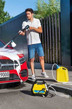 L'appareil propose trois niveaux de débit (30, 170 ou 230 litres/heure). Cela permet d'assurer aussi bien l'arrosage des plantes (mode Spray à 2,5 bars) que le nettoyage -plus- poussé d'une carrosserie de camping-car ou d'un deux-roues de retour de randonnée (mode Eco à 25 bars) ou le décrassage d'une terrasse maculée de saletés (mode Clean à 50 bars).