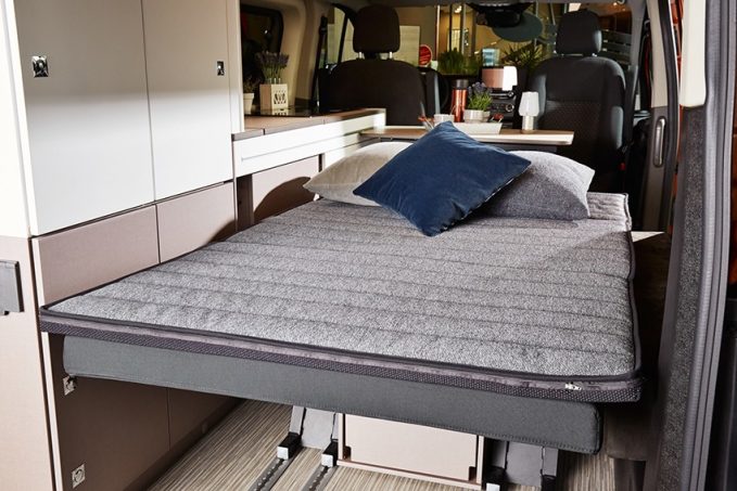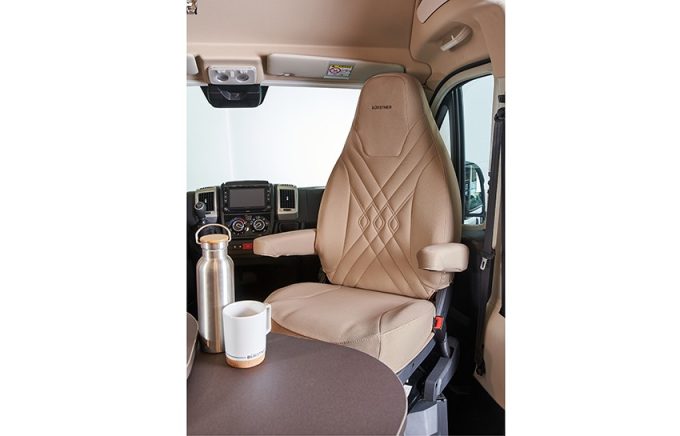 Les modèles sur Fiat Ducato ou Citroën Jumper pourront être dotés, en cabine, de housses de siège pour les embellir et les protéger, d'un lit d’appoint pour enfant. Cet accessoire, développé en partenariat avec Bürstner, permet d'ajouter un couchage supplémentaire de bonne dimensions (160 x 90 cm). Il est aussi facile à mettre en place qu'à replier après usage (sac de rangement et drap-housse fournis).
