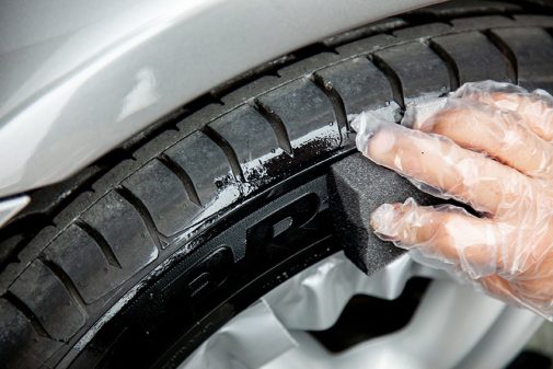 - Le kit Quixx Tyre permet de redonner un bel aspect aux flancs des pneumatiques un peu usés. Contrairement à de nombreux sprays pour pneus, cette produit ne confère pas un aspect brillant et gras, mais plutôt une teinte mate et soyeuse. Une boîte permet de traiter entre 8 et 12 pneus, selon leurs dimensions. L’effet antivieillissement tient jusqu’à 6 mois. L’application peut s’effectuer en un rien de temps. Cette "peinture" spéciale sèche rapidement, ne colle pas, n’attire pas la poussière et résiste même à la pluie ou aux lavages. Elle protège en plus la gomme des méfaits engendrés par l'exposition aux rayons UV.