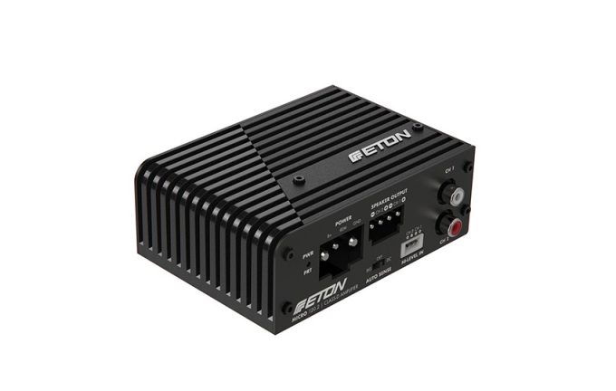 L’amplificateur Micro 120.2 (2x85 W sous 4 Ohms) deux canaux fonctionne en classe D. Par sa taille compacte (L 11 x l 8 x h 4,2 cm), il s’intègre aisément dans la planche de bord.