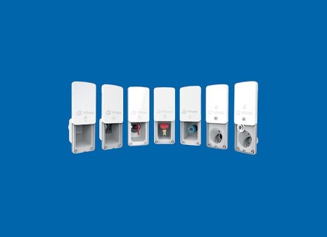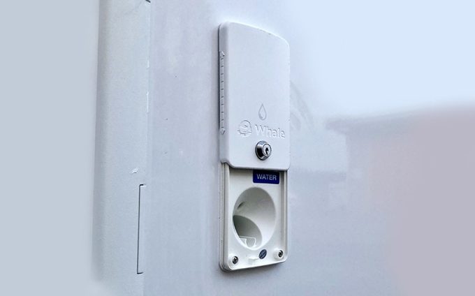 Quel camping-cariste n'a pas rencontré un problèmeavec les prises extérieures destinées à brancher le véhicule au réseau, refaire le plein d'eau ou bénéficier d'une sortie de gaz pour un barbecue ? Afin d'éviter que le clapet de sécurité relevable de la trappe ne casse ou soit mal fixé après utilisation, la marque irlandaise Whale a imaginé des versions à clapet de protection coulissant (vers le haut) pour libérer la trappe.