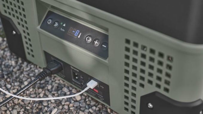 Commandes et affichage numérique prennent place sur le côté. Le tout se révèle assez intuitif avec des indications directes comme la température réelle ou le mode de fonctionnement (normal ou turbo). Son fabricant l'a aussi doté d'un système de protection électrique contre la décharge pour éviter tout problème avec la batterie du véhicule (12 ou 24V). Son alimentation peut être assurée sur secteur en 230V (fusible de 6,3 A). Grâce à une connexion intégrée Bluetooth, il est possible de toujours garder un œil sur sa glacière à distance à l'aide d'un smartphone et d'une application dédiée (téléchargement rapide avec un QR code).