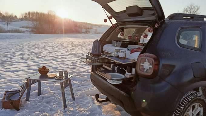 Pour effectuer cette transformation en mini-camping-car du SUV roumain, la marque polonaise a conçu un module qui accueille une cuisine avec réchaud à gaz et évier. Ce dernier est équipé d'un robinet, alimenté par une réserve de 10 l d’eau, ainsi que de compartiments pour le rangement de tout le nécessaire pour pique-niquer. Un couchage double, composé d'un support en bois sur lequel repose un matelas en mousse de haute qualité, prend place juste au-dessus.