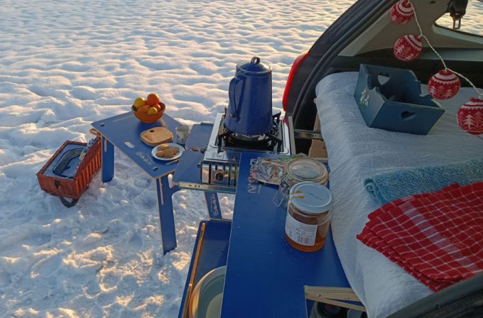 Dans sa panoplie d'accessoires, 123camp a également prévu une table repliable pour prendre ses repas en plein air et un canapé pour s’installer plus confortablement dans la nature.