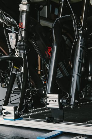 Chaque rail adopte un système de fixation universel, rapide à mettre en place, afin d'assurer le maintien de tous les types de vélos (route, VTC, VTT). Easy-In propose également, en option, des supports additionnels destinés aux fourches ou roues supplémentaires.