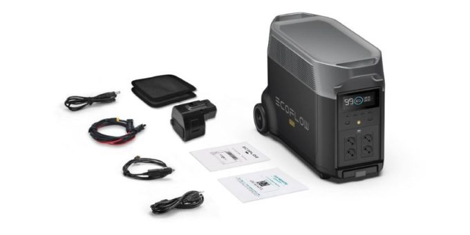 - La station électrique Delta Pro bénéficie d'une capacité de base de 3,6 kWh (extensible à 25 kWh) pour un poids de 45 kg. Elle peut alors assurer jusqu'à une semaine de consommation électrique, plus particulièrement lorsqu'elle est raccordée à des accessoires de l'écosystème EcoFlow tels que des panneaux fixes ou traqueurs solaires voire une éolienne.