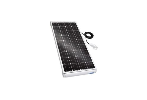 Léger, plat et souple, le modèle Teleco TSPF 110W peut être fixé sur tous les types de toit, même légèrement bombé. Ce panneau de 20 mm d’épaisseur, de 1216 x 533 mm, n’affiche que 1,8 kg sur la balance. Il dispose de 36 cellules monocristallines capables de produire jusqu’à 110 W de puissance (à une tension nominale de 19 V).