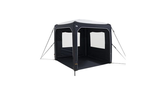 Ce cube de 2,3 m de côté comprend des sangles QuickPitch, un tapis de sol, une pompe à main, des piquets et un sac de transport type sac à dos. Le fabricant suédois commercialise également d'autres accessoires complémentaires (pompe électrique, extension annexe...).