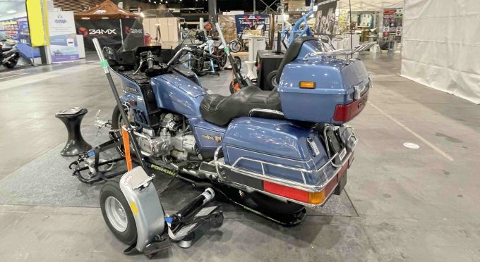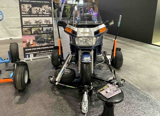 For-One présente la grande sœur de sa remorque moto Standard sans rampe d'accès. Dénommée BIG, sa charge utile de 400 kg lui autorise le transport d'une grosse cylindrée derrière un camping-car.