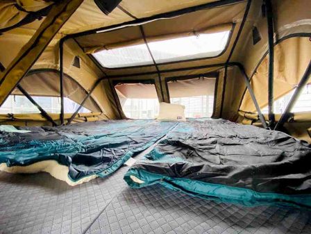 La tente de toit Cumaru 135 se place encore un cran au-dessus, en termes de praticité et de solidité. Elle est caissonnée dans un compartiment en aluminium, à la fois léger et résistant (75 kg à sec). Cet équipement s'avère idéal pour les baroudeurs qui aiment sortir des sentiers battus sans craindre de l'abîmer. Ses cotes (L 203 x l 130 x h 142 cm) en font une compagne parfaite pour les virées en duo. Le fabriquant a prévu, au rayon des options, un jeu de barres de toit pour transporter si besoin des objets de sport pas trop lourds (skis, surf...).