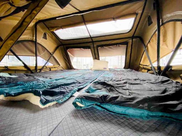 Côté accessoire, il est possible d'ajouter un auvent arrière (entre 399 et 499 €) qui fait office de liaison entre le sol et l'entrée en hauteur de la tente. Pratique pour se tenir debout et effectuer un brin de toilette à l'abri des regards.