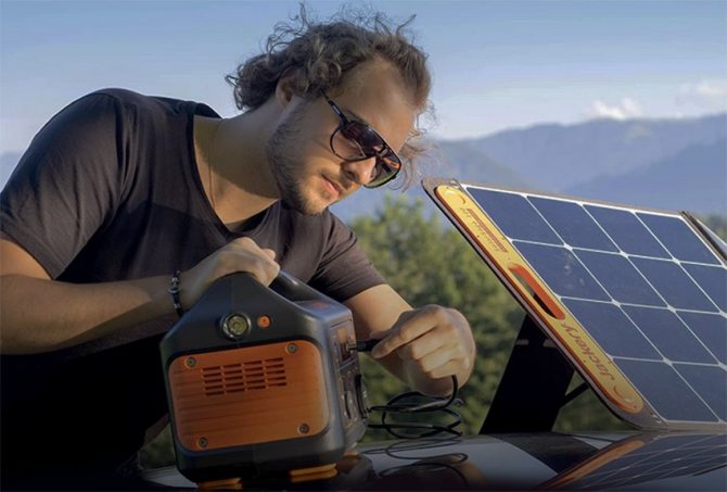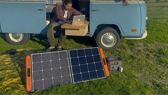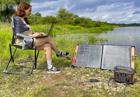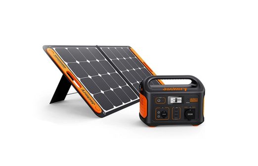 Nomade et facile à utiliser, le pack énergie Jackery Solar Generator 500 est un kit composé d'une centrale électrique portable Explorer 500 et d'un panneau solaire portable SolarSaga 100.