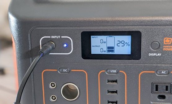 Pour un maximum de polyvalence, sa face avant reçoit de multiples sorties dont une AC 230 V (de 500 à 1 000 W en crête), une prise allume-cigare, trois ports USB-A (5V 2,5 A), deux sorties DC ainsi d'une entrée DC. Un mini-écran de contrôle monocristallin affiche l'état des réserves (en pourcentage), la consommation et la production instantanée (en watts) des appareils qui y sont raccordés. Un éclairage est même prévu sur le côté.