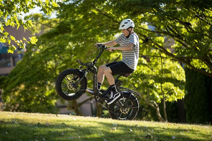 Son premier atout est de disposer d'un cadre renforcé, d'un guidon et de pédales, repliables pour offrir un gain de place quand il n'est pas utilisé. Ce modèle F-Séries repose sur des roues de 20 pouces (avec jantes à bâtons) dotées de pneus ballon (résistants aux crevaisons) pour évoluer sur tous les terrains (asphalte, terre, neige).