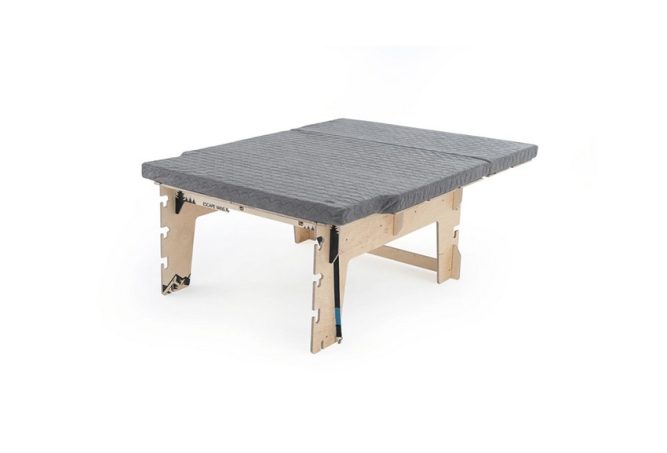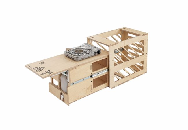 L'Eco Box prend l’aspect d’une table pliante en bois qui peut être transformée en sommier pour mettre en place un lit avec un matelas (fourni). Une tablette coulissante extérieure peut y être greffée, afin d'y poser éventuellement un réchaud. La version Eco Box + accueille un tiroir dédié au réservoir d’eau. Ce kit de base se révèle idéal pour les sportifs qui peuvent glisser en dessous leurs matériels (planche de surf, vélo...).