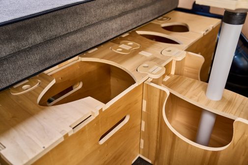 Après un road-trip dans le nord de l’Europe, à bord de son véhicule du quotidien, Julien Boucault fait le constat qu’il n’est pas forcément nécessaire de posséder un fourgon aménagé à 60 000 € pour profiter de la van life. D’autant plus que tout le monde ne peut pas se le permettre ! C’est comme ça qu’est née Tchao Tchao. Le secteur des kits amovibles est en plein essor, mais Julien Boucault souhaite se démarquer en proposant des kits avec des valeurs fortes. C’est-à-dire éco-responsables et engagées puisque la fabrication est 100 % française, de la conception à l’assemblage. Cette dernière étape est d’ailleurs sous-traitée à l’ISTA49, une entreprise adaptée qui emploie des personnes en situation de handicap. Tchao Tchao s’engage aussi sur le plan écologique puisqu’aucun produit chimique n’est utilisé pour assembler les kits. Cela se fait intégralement grâce à des techniques spécifiques au secteur du bois, comme l'assemblage tenon-mortaise.