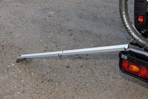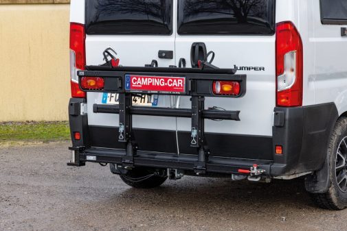 La hauteur du porte-vélos est aussi assez basse. Ce qui facilite le chargement des bicyclettes. Une rampe de chargement est toutefois proposée en option (139 €) pour faciliter la montée de certains vélos assez lourds, comme les VAE notamment. Cette rampe se replie par le milieu. On peut alors la ranger dans la soute après usage.