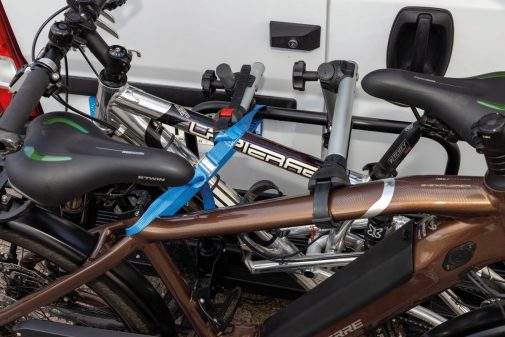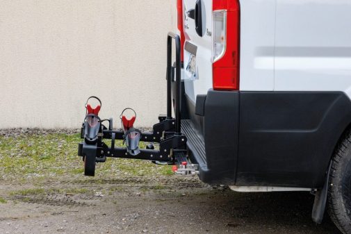 Pourquoi avoir choisi le BusBiker XM 290 plutôt que tout autre porte-vélos ? La question peut effectivement se poser en regard de l’offre pléthorique de porte-vélos disponible sur le marché. La réponse tient dans la fonction essentielle de l’objet : il pivote à 90°, ce qui autorise l’ouverture des battants arrière du fourgon et l’accès à la soute, tout cela sans être obligé de retirer les vélos de leur support.
