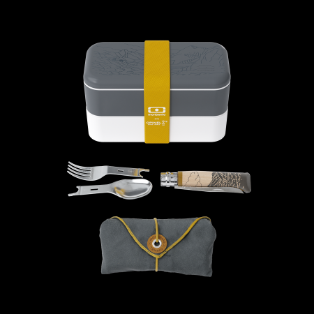 La collaboration de deux marques françaises aboutit à un kit complet et intéressant. Il contient une lunch box hermétique monbento de deux étages et le set Picnic d’Opinel composé d’un couteau au manche en hêtre et lame en acier inoxydable et deux inserts fourchette et cuillère. Idéal pour emporter son repas lors d’une grande randonnée.