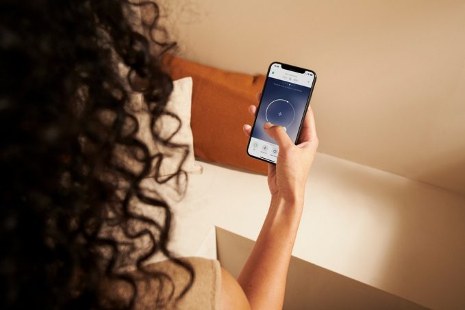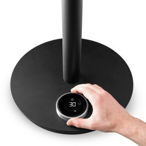 Le Whisper Flex Ultimate se commande intuitivement par un bouton tactile pour la mise en marche et l'arrêt, un bouton rotatif équipé d'un écran LED et une télécommande amovible. Il peut aussi être piloté à distance avec l'application smartphone gratuite Duux, disponible sous iOS et Android. Il est même possible de le commander à la voix par les assistants vocaux Amazon Alexa et Google Assistant.
